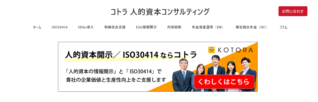 ISO30414(人的資本情報開示)などコトラのノウハウを活用した「コトラ人的資本コンサルティング」、「コトラHRサーベイ」、「コトラHRDX」といった可視化サービスも拡大しております。具体的には、ISO30414認証取得支援、有価証券報告書や統合報告書、人的資本レポート(People Fact Book)における人的資本開示支援、組織・人事コンサルティングを行っております。