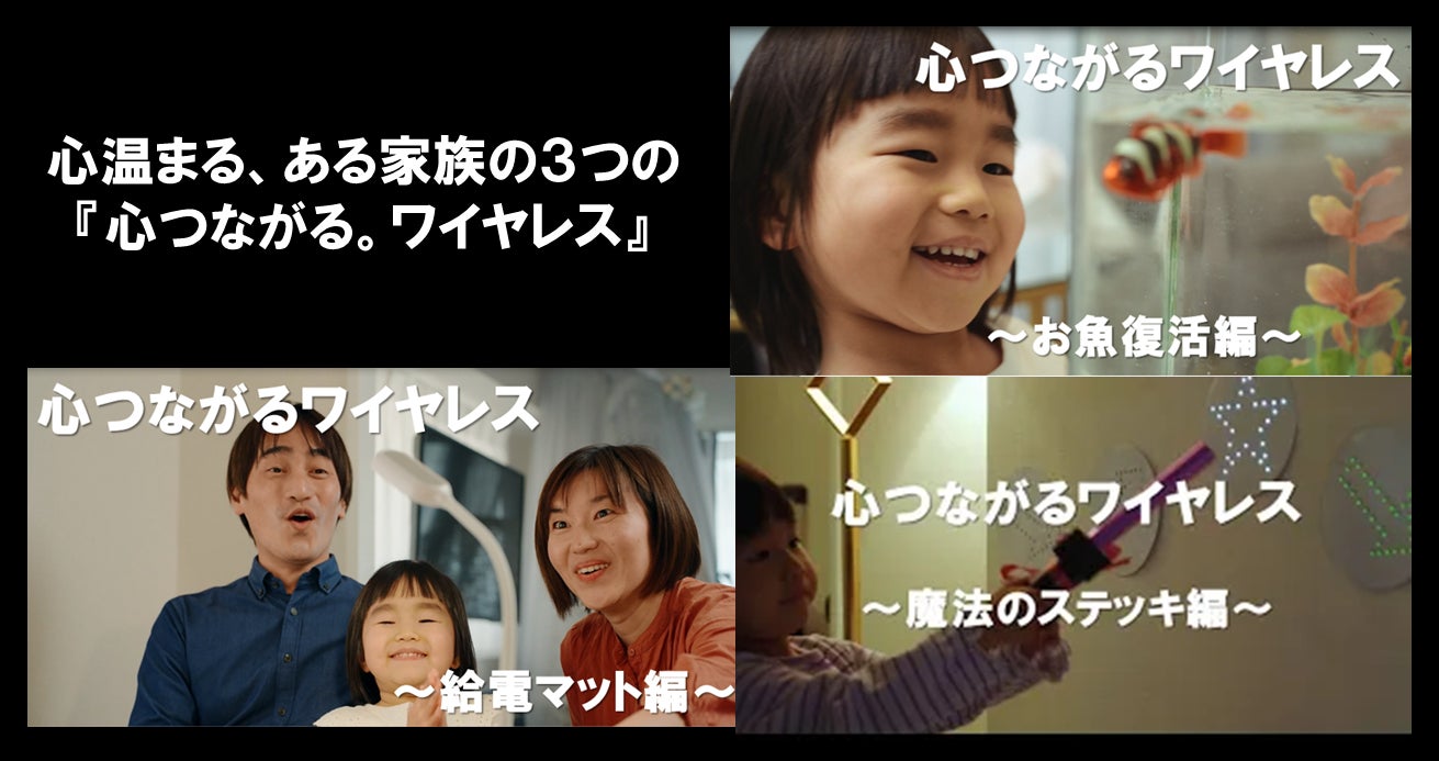 『給電マット』、『ワイヤレス水槽』、『魔法のステッキ』などワイヤレス給電コンセプトモデルを使った、ある家族の3つのデモムービーを3月26日より公開中