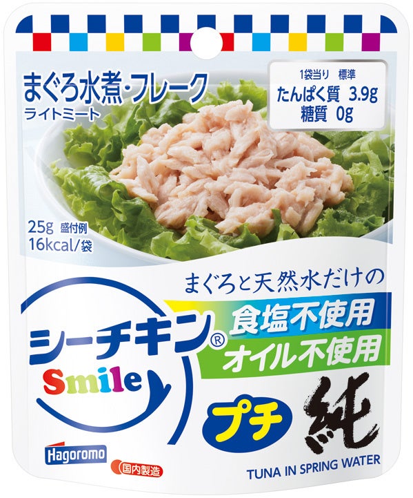 はごろもフーズ株式会社(本社:静岡県静岡市 社長:後藤佐恵子)は、小容量25gのきはだまぐろと天然水だけを使用した『シーチキンSmileプチ純』を発売します。