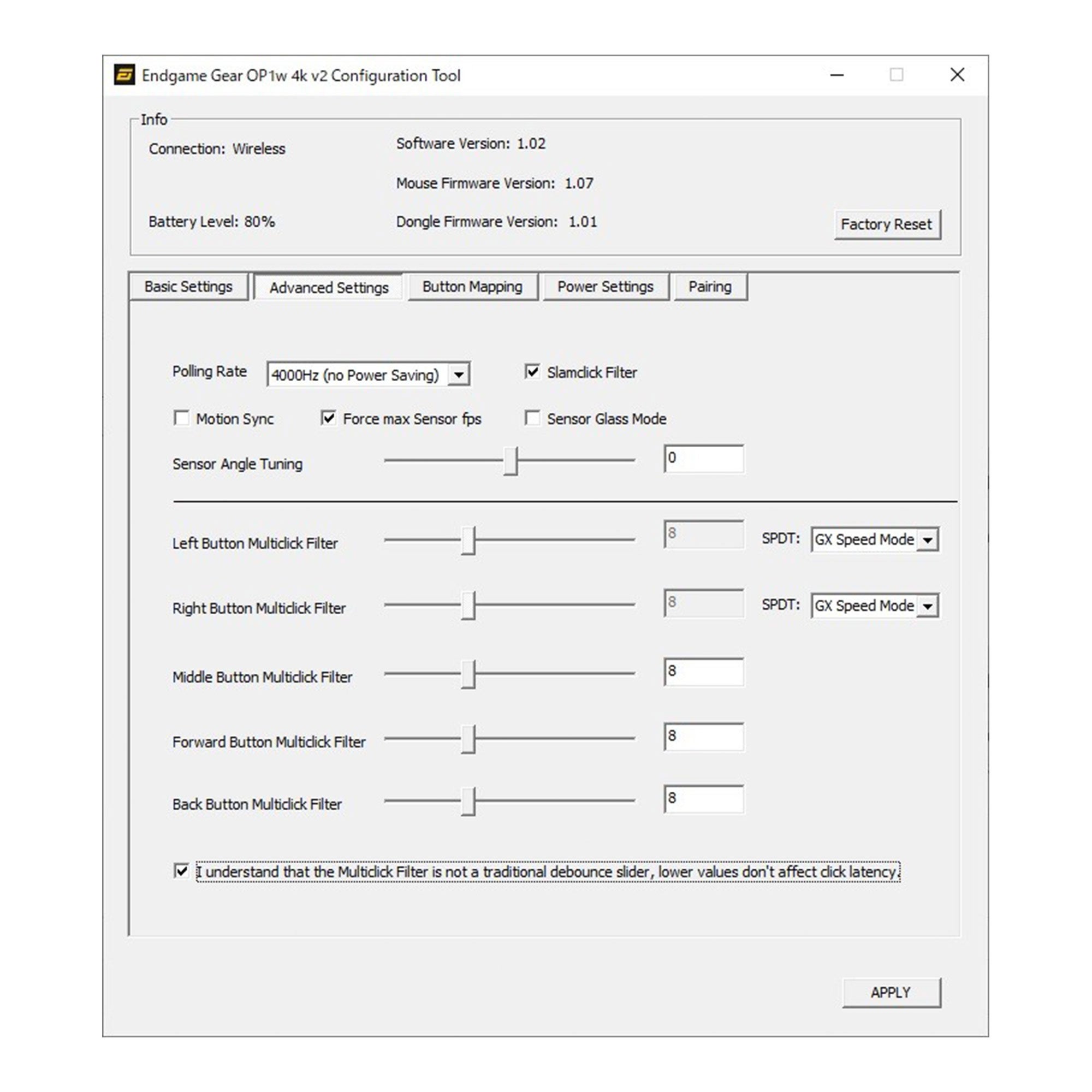 メインボタンのモード変更や最大スキャンレートのON/OFF、LOD設定、ボタンのリマップなどを行えるソフトウェアを用意。メーカー公式サイトからダウンロードして使用できる。