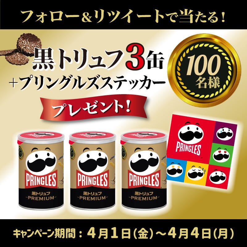プレミアムシリーズの発売を記念し、「プリングルズ 黒トリュフ」と、ブランドオリジナルキャラクター「Mr.P」のステッカーが当たるTwitterキャンペーンを開催いたします。