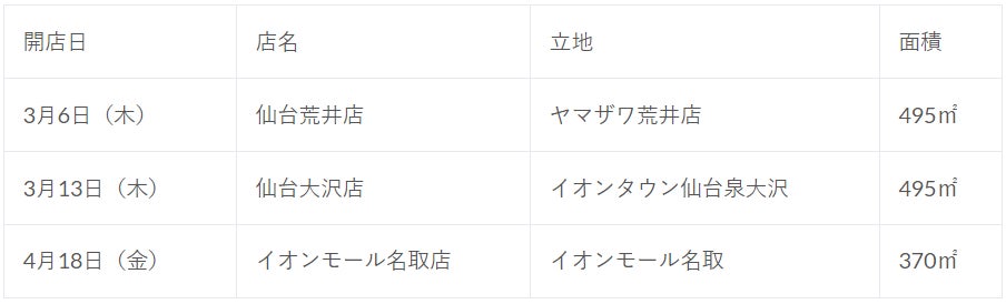 ワークマン318店、WORKMAN Pro 10店、WORKMAN Plus615 店、#ワークマン女子78店※1とWORKMAN PlusⅡ15店の計1037店を展開する株式会社ワークマン(本社:群馬県伊勢崎市、代表取締役社長:小濱英之)は「#ワークマン女子」から改名した「Workman Colors」(以下Colors店)の下記3店を宮城県下で順次にオープンします。