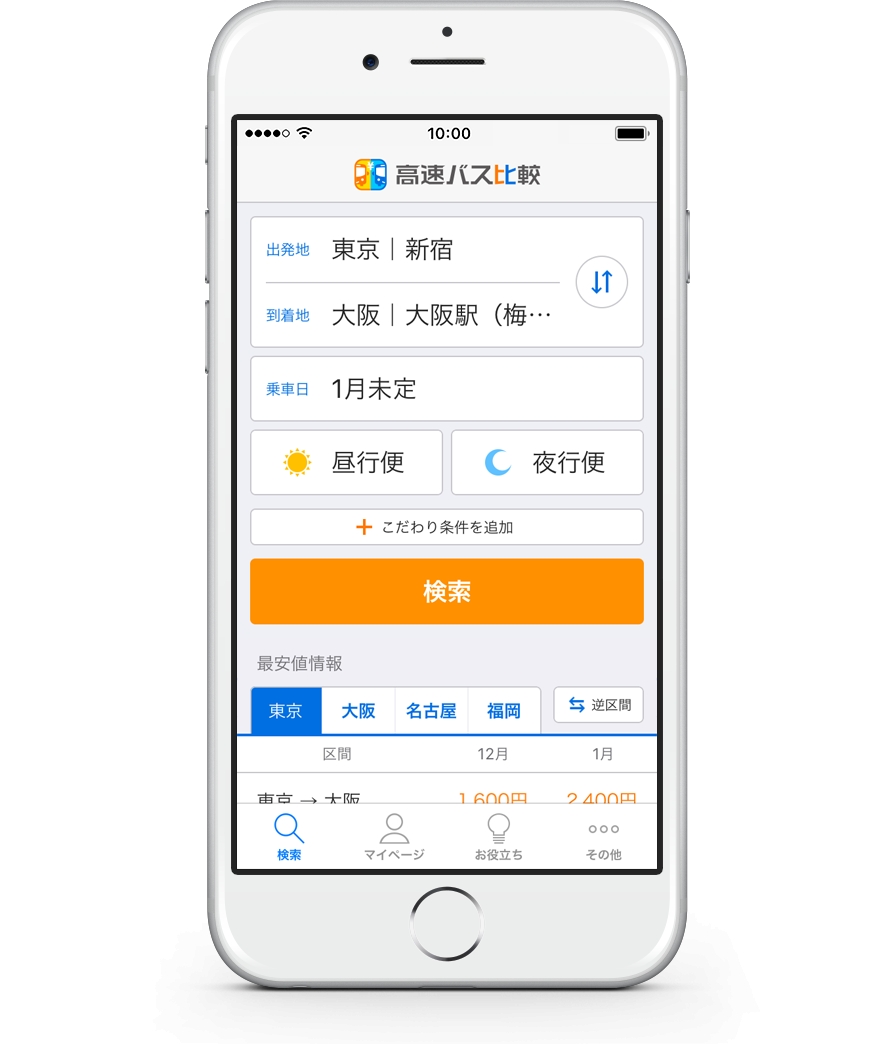 主な特長として、「コンセント付」「3列シート」「女性専用」など座席の機能やサービスで条件検索できたり、平日と週末、祝日前の料金変動がひと目でわかるカレンダー機能など、ユーザーのご希望に合った高速バス・夜行バスを見つけられる便利な検索機能が充実しております。またスマートフォンアプリ「高速バス比較」では、プライスアラートや検索条件・お気に入りの保存など、アプリだけの機能も搭載しております。