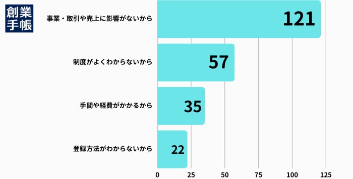 インボイス登録をまだ済ませていない222件の理由として最も多かった答えとしては「事業・取引や売上に影響がないから」と答えた方が121件と全体の半数を占め、次に「制度がよくわからない」と答えた方が57件と全体の1/4を占める結果になりました。