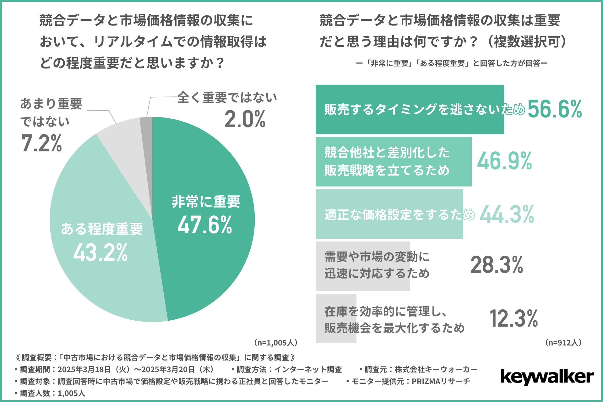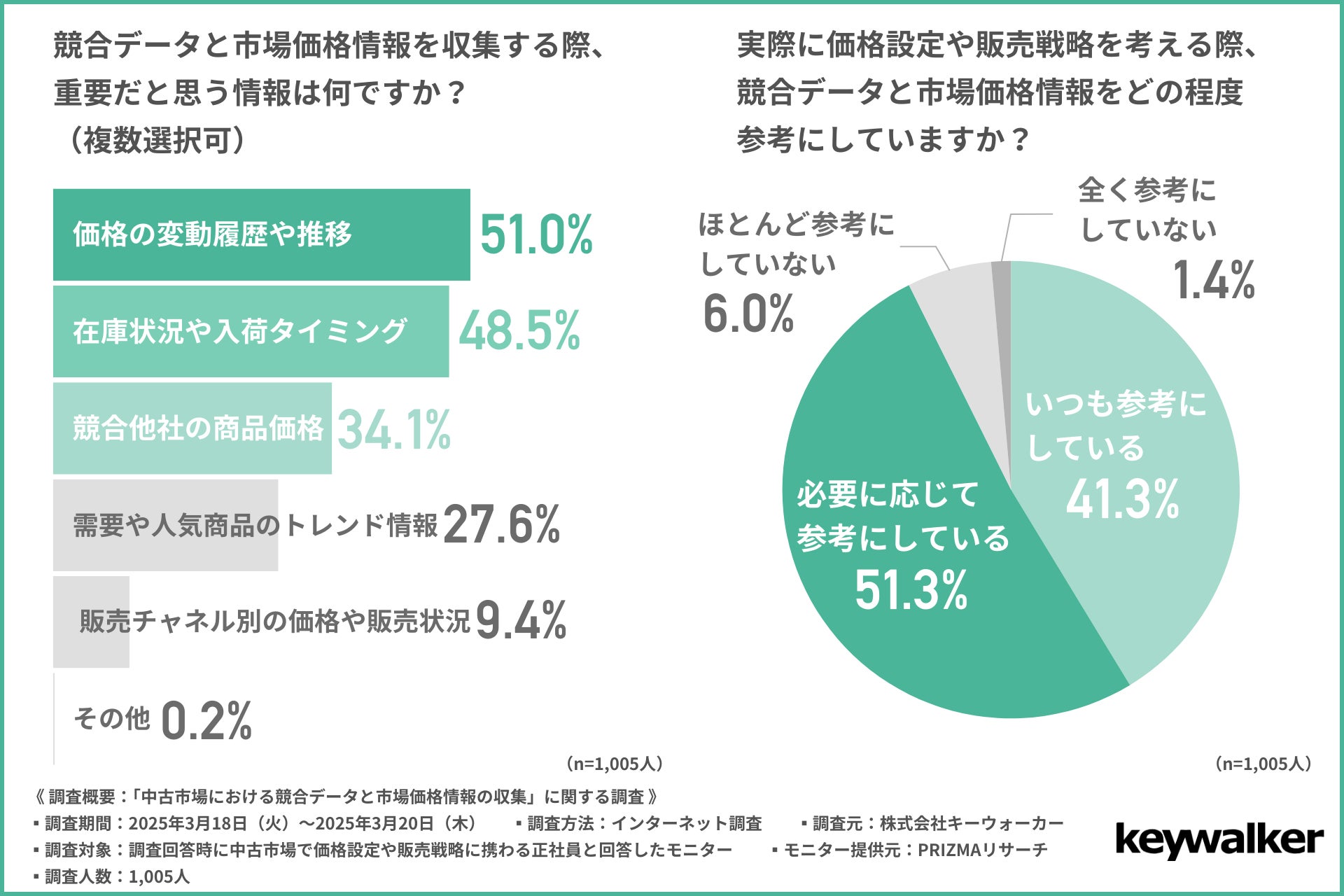 そこで今回、株式会社キーウォーカー(https://www.keywalker.co.jp/)は、中古市場で価格設定や販売戦略に携わる正社員を対象に、「中古市場における競合データと市場価格情報の収集」に関する調査を実施しました。