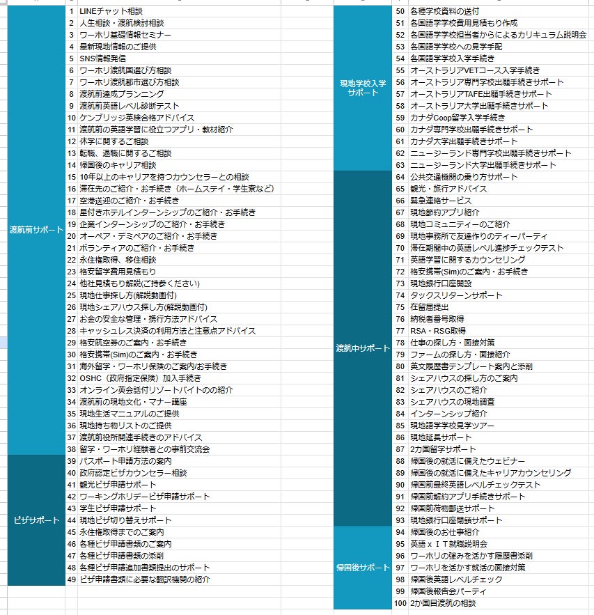 「ビザのこと」「仕事探し」「住まい」「英語」「仲間づくり」… ワーホリって、やることが100個くらいある。だからワーホリ協会は、その100個まるごと無料でサポートすることにしました!
