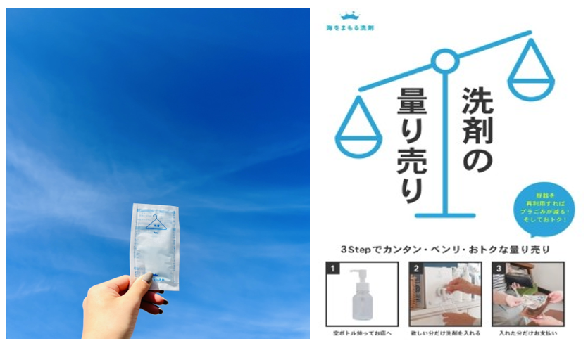 リニューアルオープン当日は、両店舗合わせて先着500名に「海をまもる洗剤」のサンプルを