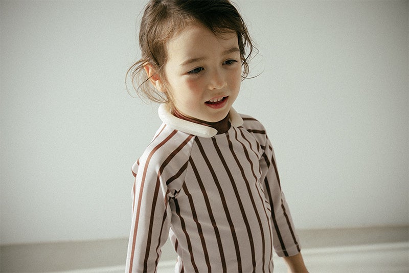UPF50+のUVカット素材を採用し、ラッシュガードを羽織ることなく水遊びを楽しめます。