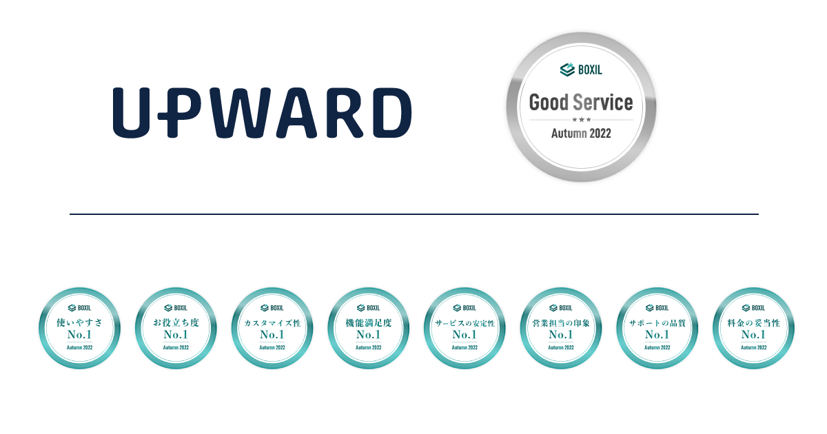 「BOXIL SaaS AWARD(ボクシル サース アワード)」は、スマートキャンプが運営するSaaS比較サイト「BOXIL SaaS」に掲載されている約3,000サービスの中から優れたSaaSを審査、選考、表彰するイベントです。今回の「BOXIL SaaS AWARD Autumn 2022」は、2021年7月1日から2022年6月30日までの1年間で新たに投稿された口コミ約6,500件を審査対象としており、「UPWARD」は「 CRM(顧客管理システム) 部門」で「Good Service」に選ばれました。