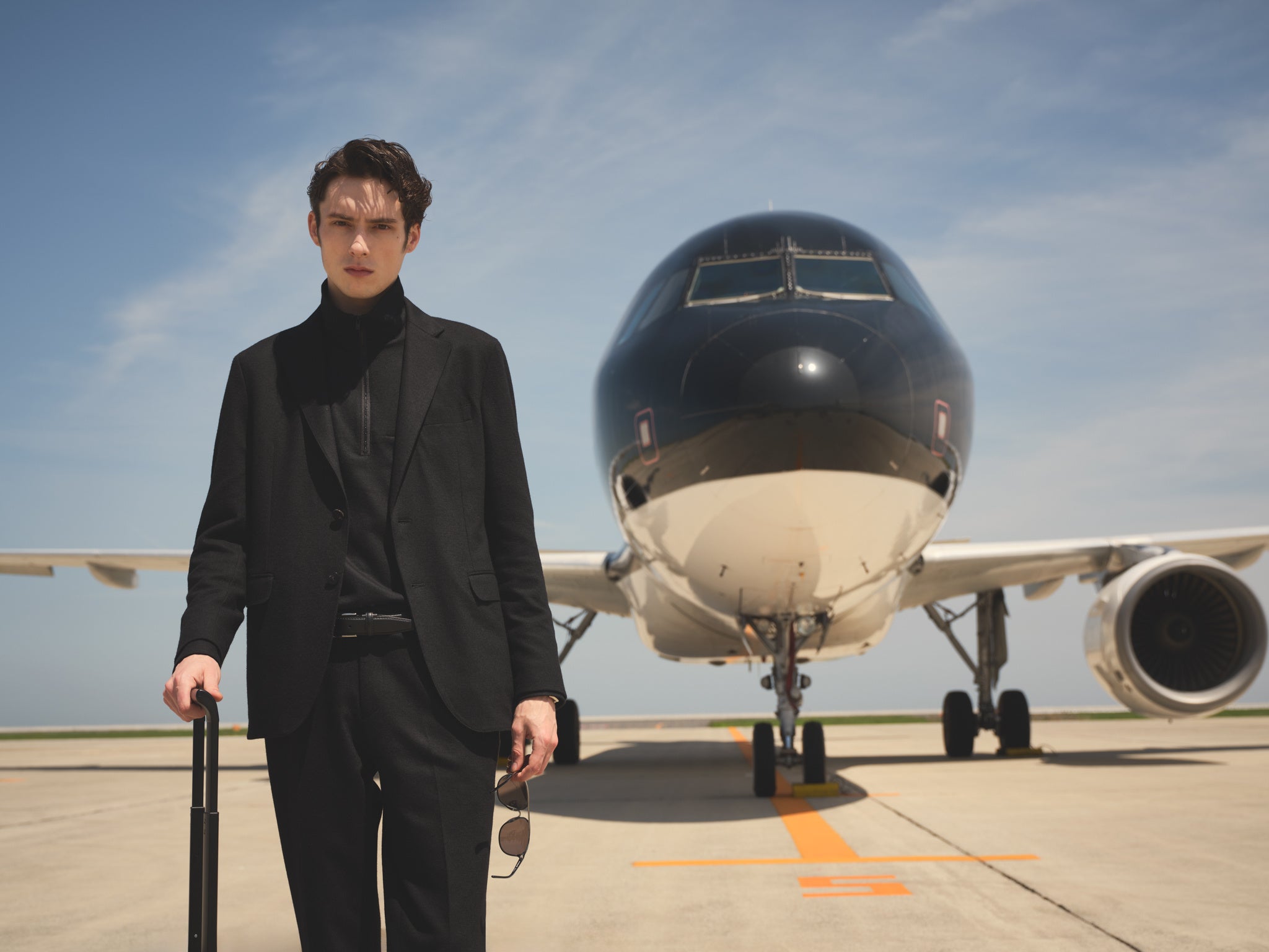 3ピースのセットアップスーツと同様、スターフライヤーとデザインワークスによる現代のジェットセッターのために生み出された、旅行や出張に欠かせないトラベルグッズもご用意。