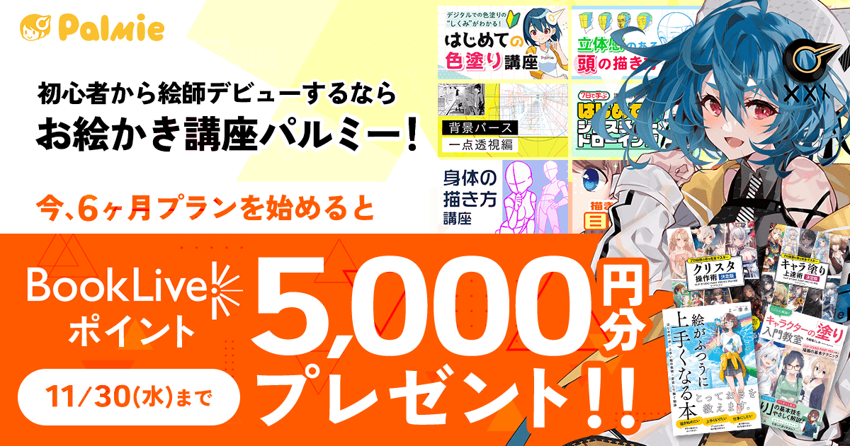パルミーは、自宅に居ながらイラストやマンガの描き方が学べるオンライン教室です。著名クリエイターや漫画家、アニメーター、専門学校講師など、多くの「プロ」が講師を務めています。月額定額制(サブスク)で授業が受けられる「月謝制」は、累計利用者数15,000名を突破し、順調に利用者数を増やしています。