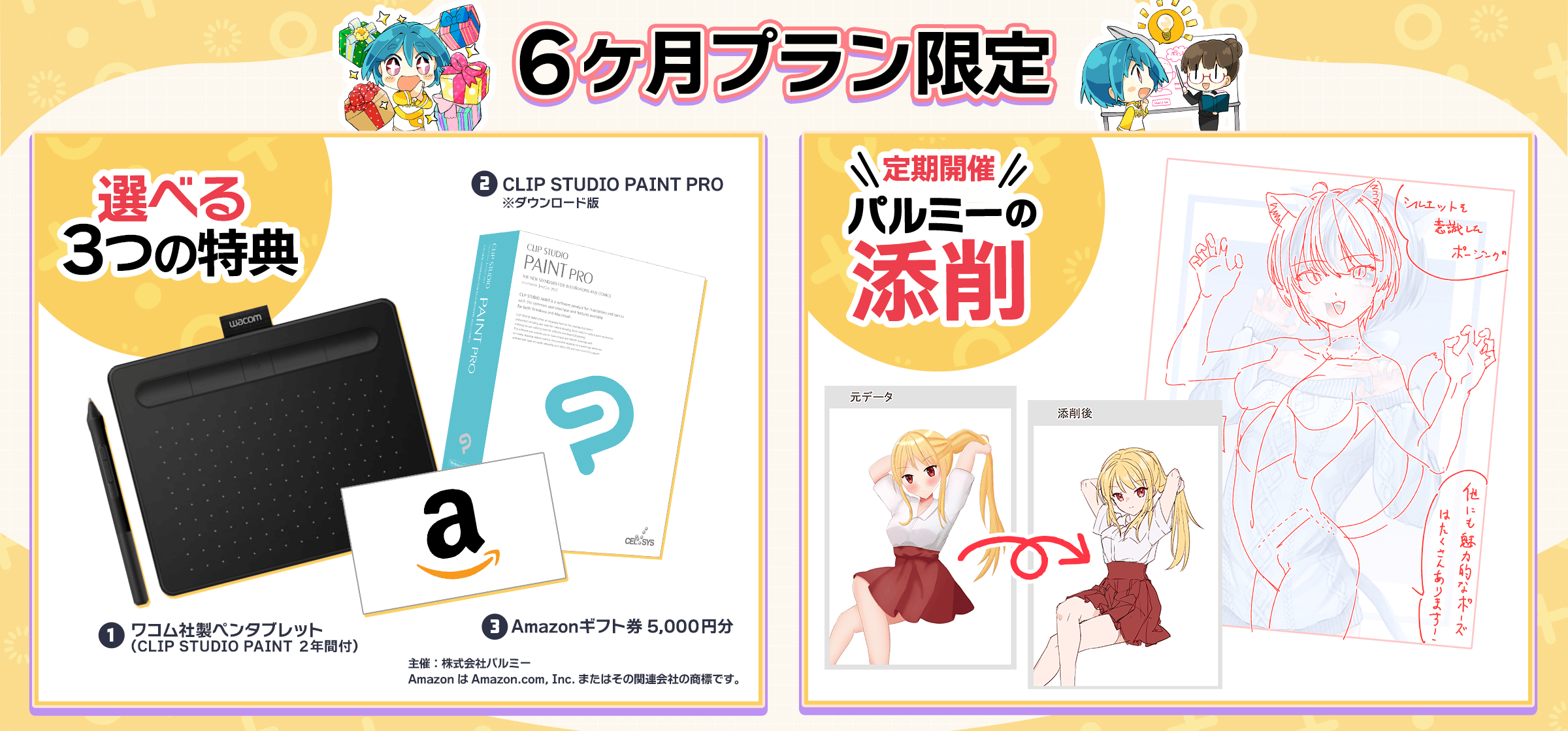 〜2022年10月3日(月)23時59分の期間中に月謝制6ヶ月プランを契約されている方を対象に、抽選で10名様にWacomの液晶ペンタブレットをプレゼントするキャンペーンを開催いたします。