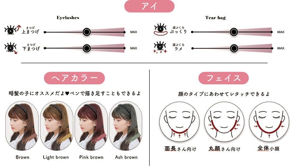バランスの良い盛り機能のラインナップで、らくがき時間内にもっと盛れる、あか抜ける♥