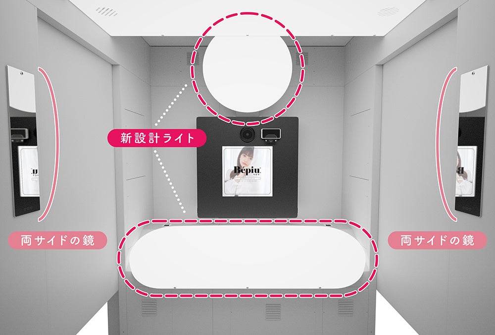 さらに、椅子に座って撮影することで、上に余白があるレイアウトを楽しめる “余白プリクラ”、自分の輪郭や、イエベ/ブルベの肌色に合わせたメイクとレタッチができるパーソナルアドバイスが入ったらくがき機能、スマホケースに挟みやすいシールサイズの採用等、プリクラユーザーの皆様が満足する「盛り」や「体験価値」を実現するための新機能を多数盛り込んでおります。