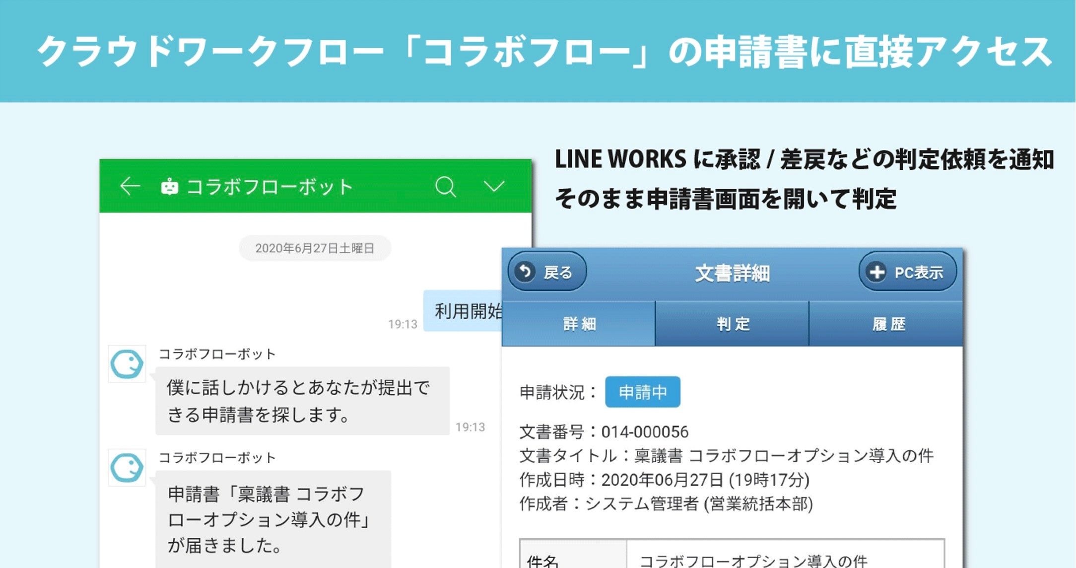 コラボフローとLINE WORKSの連携できること:申請・承認の業務がLINE WORKSから可能に