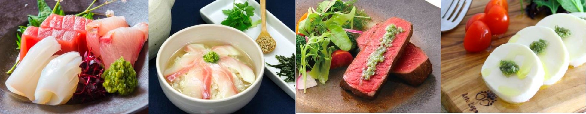 小売品わさびの市場は、2021年の売上金額は前年に対し微減しているものの冷蔵商品は2年連続で伸長しており(※1)、わさびの本格的な風味や味わいを楽しめる商品のニーズは拡大しています。今回発売する「おろし本わさび匠」は静岡県産の本わさびを使用し、おろしたてに近い豊かな風味を実現させました。ぜひハレの日など家庭での特別な食卓シーンで、本格的な本わさびの味わいとともに寿司や肉などのお料理をお楽しみください。「わさび塩」は、ドライタイプで粉状のものが主流な中、新たに開発した生タイプのわさび塩です。静岡県産の本わさびの爽やかな香りと辛味に、まろやかな塩味とシャリッとした食感を両立させ、これまでにないわさびの新しい味わいを提供します。粗目の塩でわさびと塩味のマッチをより感じられ、使い勝手の良いチューブタイプで食材にのせることができるため、刺身や寿司はもちろん、ステーキやお茶漬け、チーズなど様々な食材と楽しむことができます。