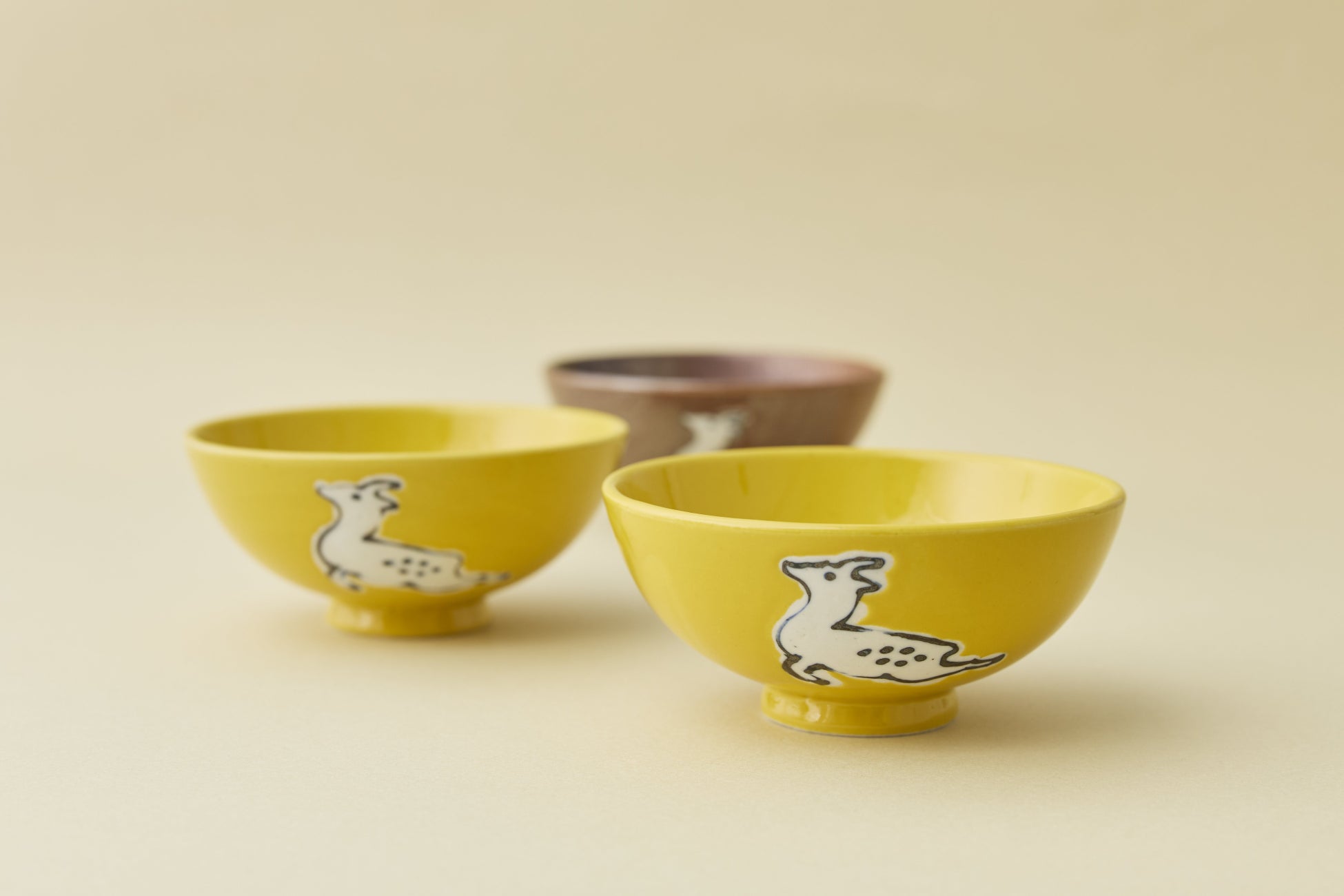 ぬくもりある絵付けが人気の茶碗シリーズに、食卓がにぎやかになる色合いの新色が会場限定で登場します。1点3,300円(税込)