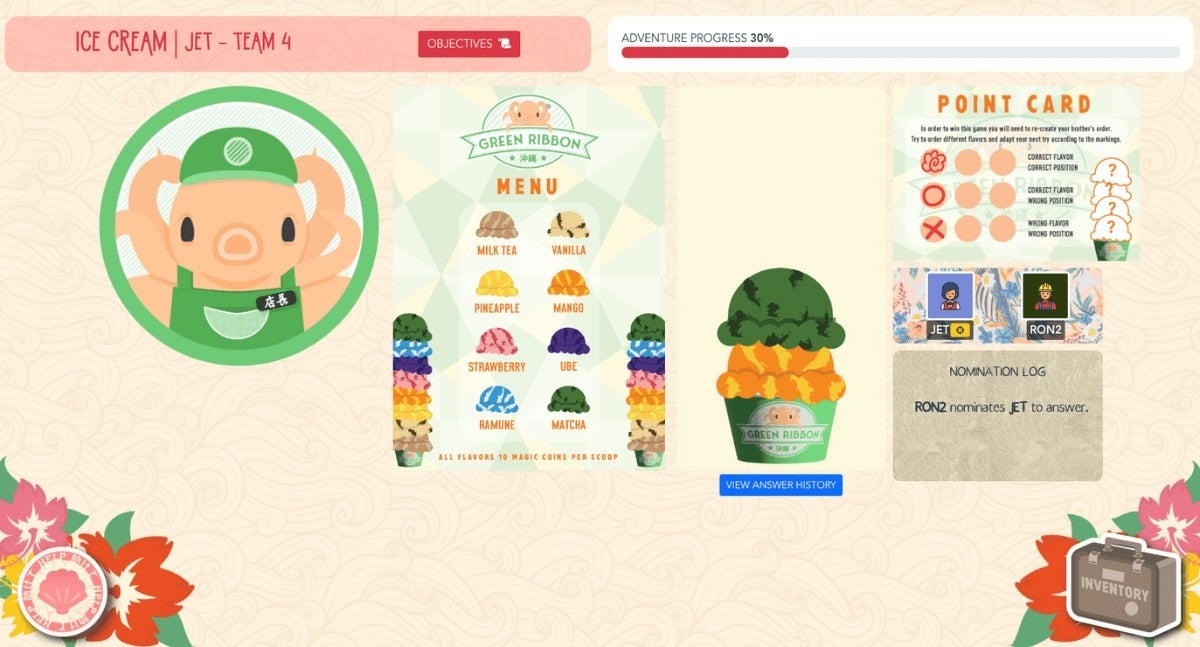 - 業務中と違い、よりソフトでラフなやりとりをすることができました。皆とても負けず嫌いで勝ちにこだわることがわかりました。謎解き中のコミュニケーション、役割には個性がでたと感じています。