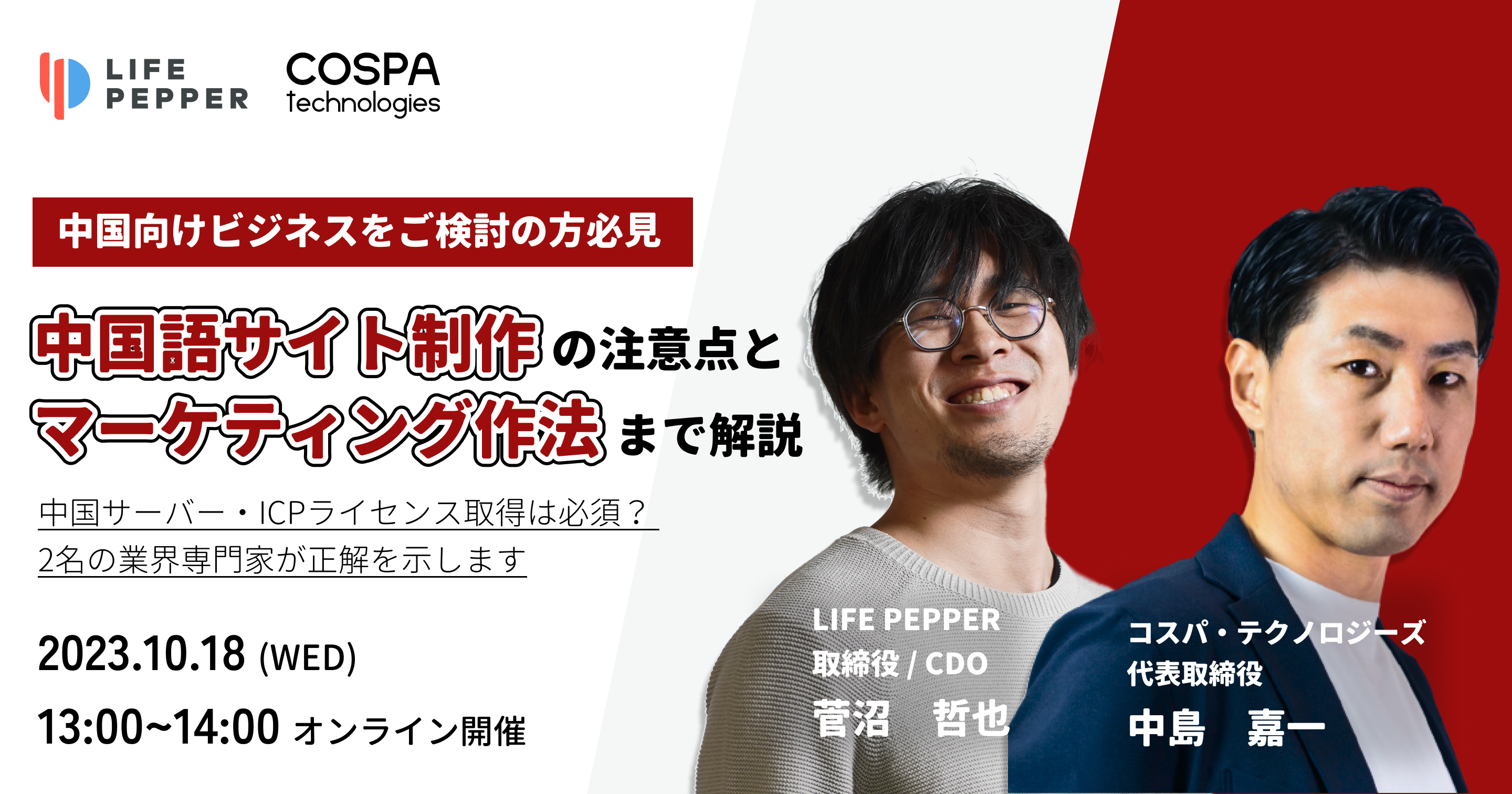 海外マーケティング支援数 1,000 社以上の LIFE PEPPER が、中国向けサイト制作を専門とするコスパ・テクノロジーズとの協業を開始