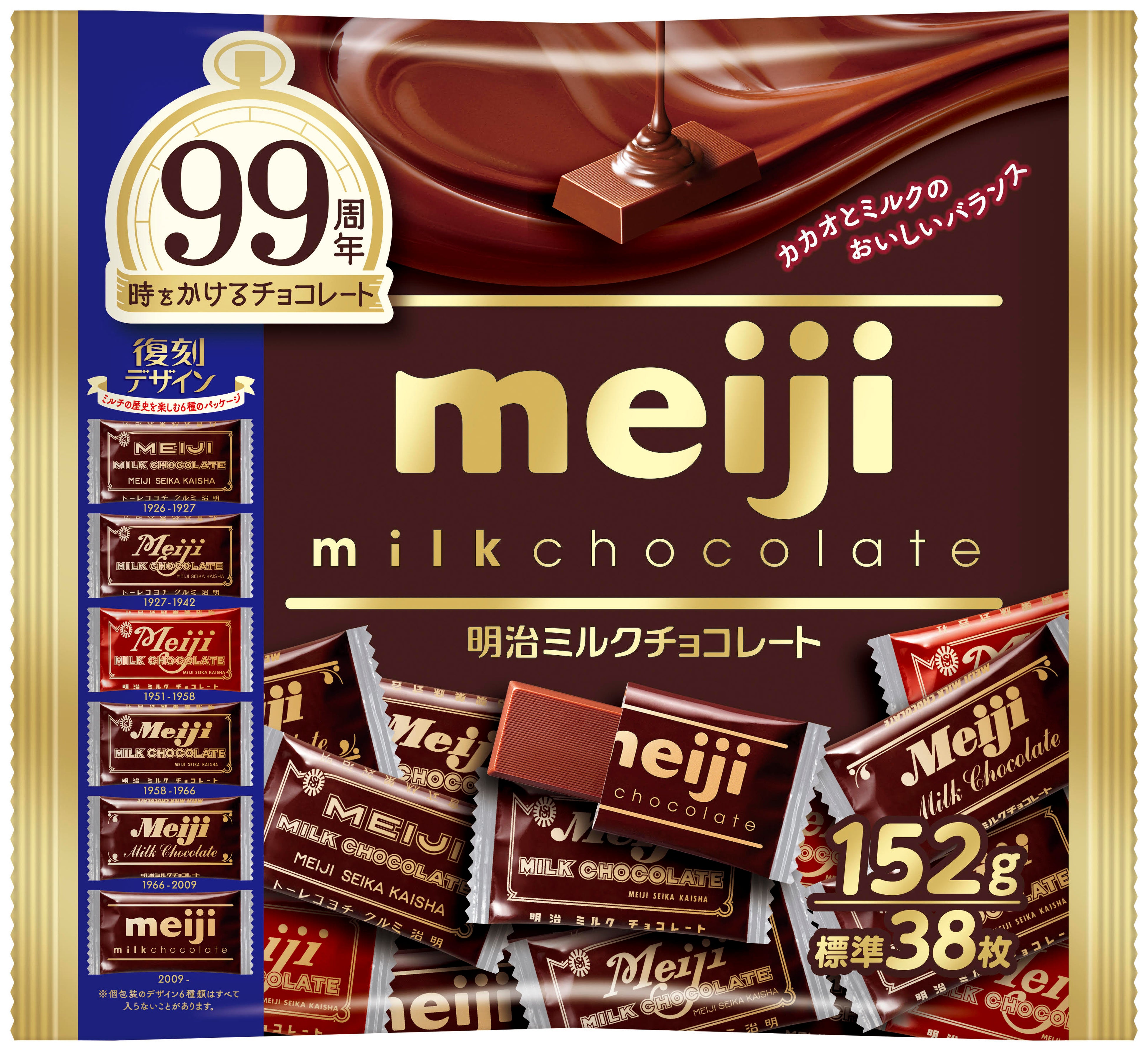 歴代パッケージデザインを個包装にデザインした、「明治ミルクチョコレート」のアソート商品「明治ミルクチョコレートビッグパック」を11月18日(火)より発売します。創業当初から最新のものまで、デザインは全6種類です。復刻デザインをどうぞお楽しみください。また、「明治ミルクチョコレート BOX (26枚)」と「明治ミルクチョコレート 50g」も同日より、期間限定パッケージで登場します。