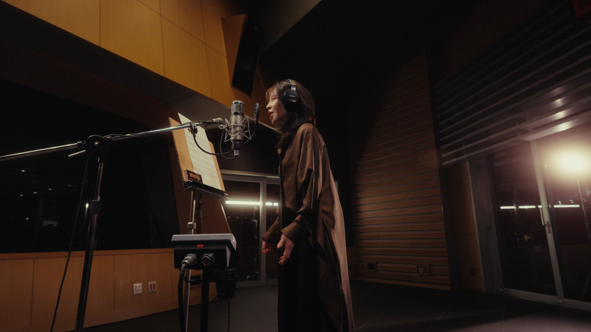 チョコレートのようなブラウンのシャツに身を包んだ中森さんが、録音スタジオに登場しました。デスク上に「明治ミルクチョコレート」を見つけると、弾んだ声で「わあチョコレート!」と嬉しそうに手に取ります。「最近、本当にチョコレートにハマっちゃって、毎日チョコレートを食べないといられないくらい」とチョコ愛を語ると、レコーディング室へ向かいます。笑みを浮かべながら、「チョコレート、チョコレート、チョコレートは明治♪」と、可憐で伸びやかな歌声を披露いただきました。ご自身の歌声をバックに、「たくさんコマーシャルの方にも出させていただいて、バレンタインデーの企画があって、鏡の前で練習するんですね、こうやって」と「明治ミルクチョコレート」との思い出を実演しながら当時を振り返ります。リズムに合わせて指を指揮棒のように振る姿や、スタッフと楽しそうに会話するレコーディング中の様子も公開されます。無事に収録を終えた中森さんは、チョコレートをデスクに戻し、来月公開のアーティストへとバトンを繋ぎます。