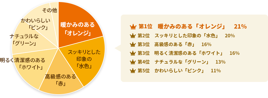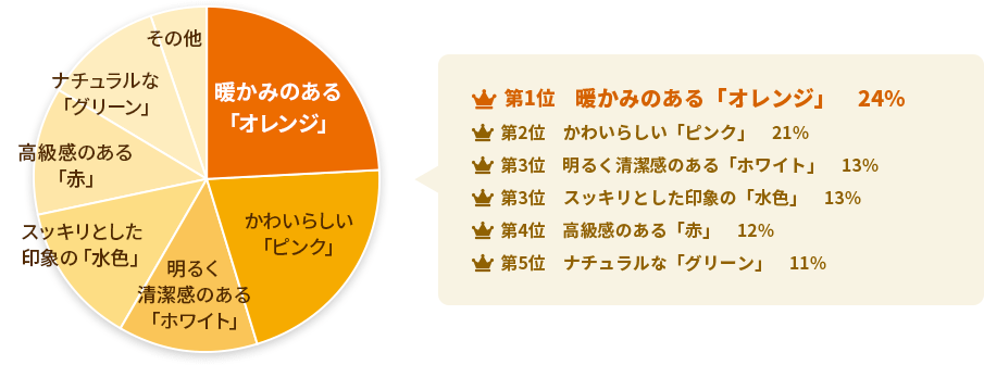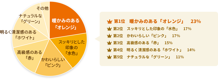 いい夫婦の日に欲しい花ギフトの色の1位はオレンジ、2位が同率で水色とピンクとなりました。
