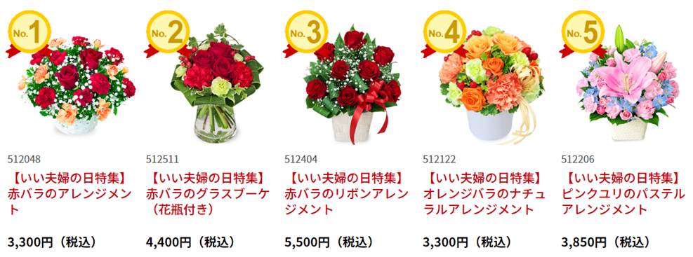 ■インターネット花キューピットの「いい夫婦の日」商品ランキングを発表!