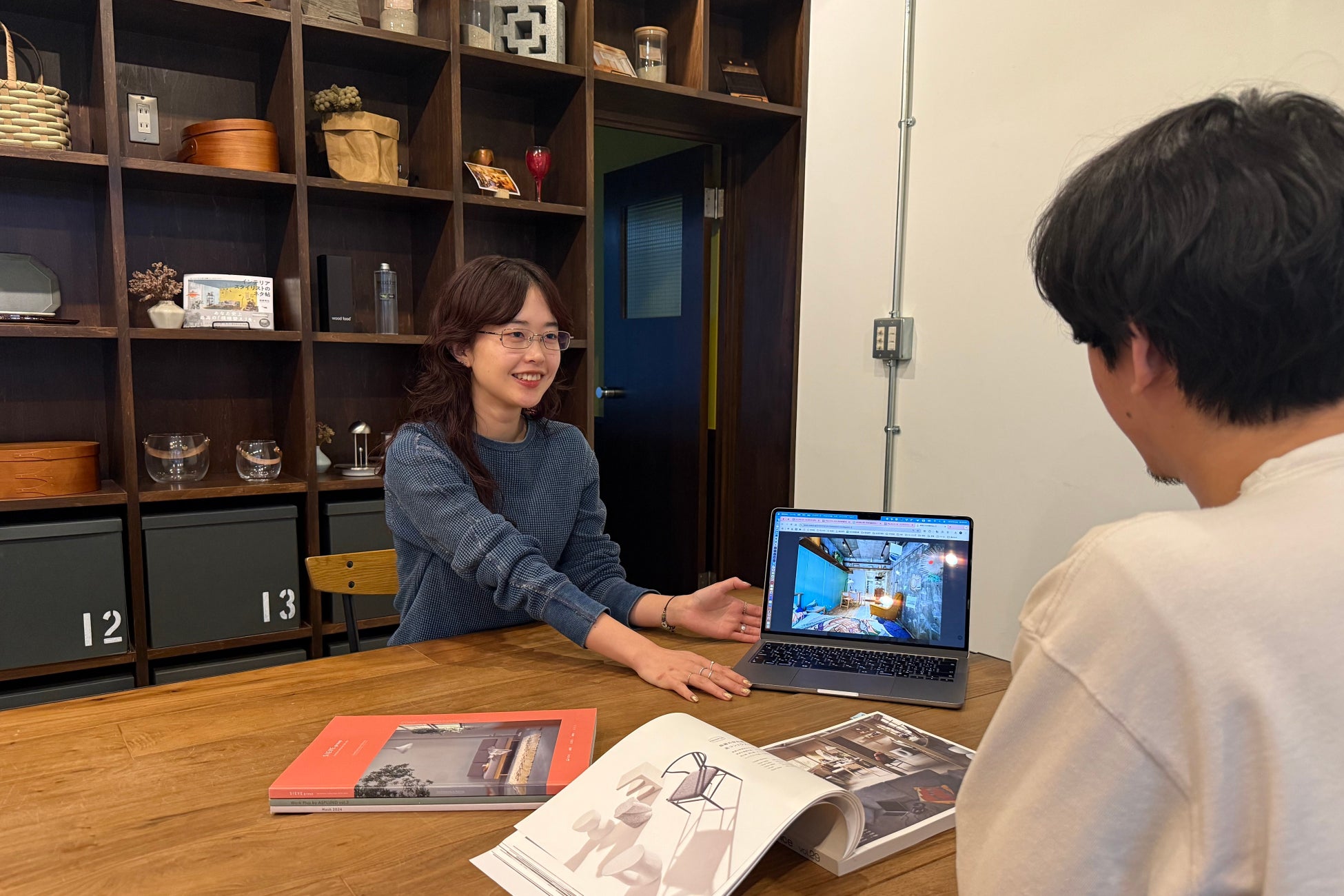 WEB予約フォームから、来社もしくはオンラインでのご相談の日程を調整いただき、事前に予算やご希望の条件をお知らせください。ご希望条件やイメージ、お部屋の間取りを元に、アイテムやレイアウトを提案します。