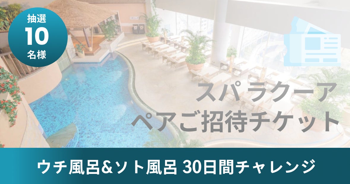 期間中に、ウチ風呂・ソト風呂問わず30日間にわたり入浴証明書を集めると、抽選で10名様にスパ ラクーアのペアチケットが当たります。