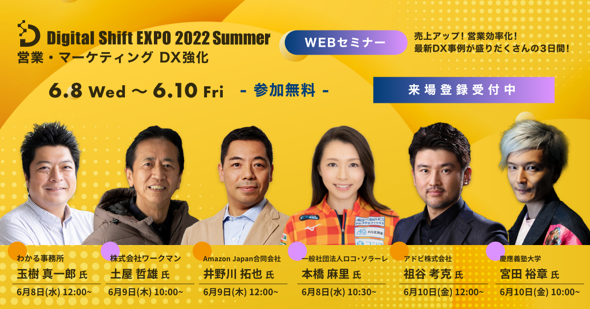 <来場登録受付中>任天堂Wii®開発者 玉樹真一郎氏 ほか豪華ゲストが最新DX事例を大公開!『Digital Shift EXPO 2022 Summer~営業・マーケティング DX強化~』