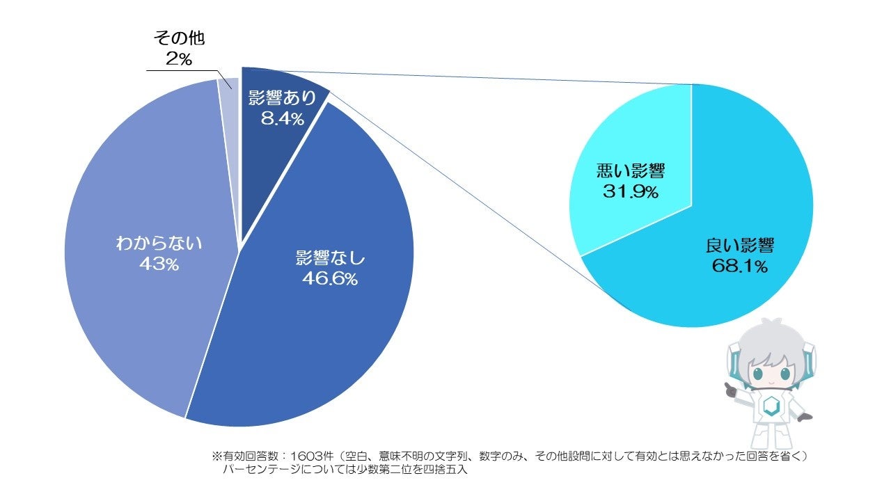 2.ビジネスに与える影響については「わからない」という意見が多く見られ、ポジティブ・ネガティブ両方の意見が混在していた