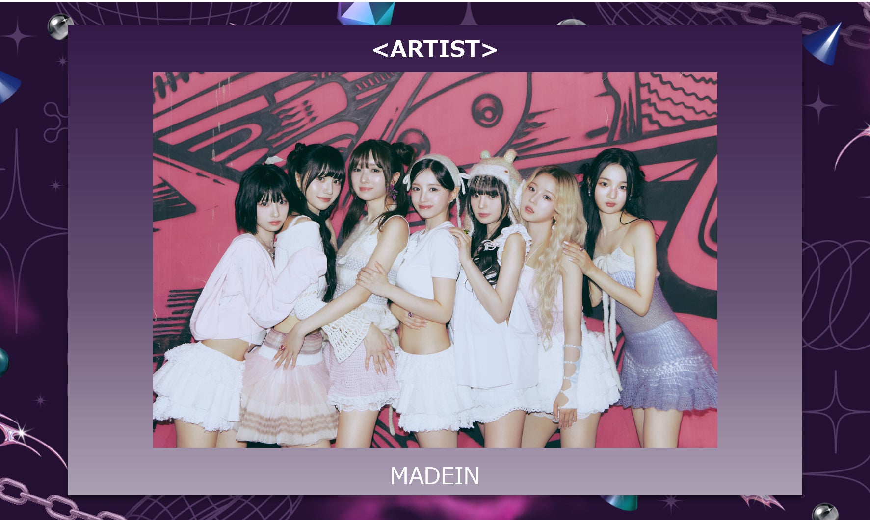 9月3日にデビューを果たした7人組の新ガールズグループMADEINのアーティスト出演が決定しました。MADEINは、グループの前身となるガールズグループLIMELIGHTのMiU、SUHYE、GAEUN、7月15日をもって9人組グローバルガールズグループ・Kep1erとしての活動を終えたMASHIRO、YESEO、ガールズグループME:Iを輩出したサバイバルオーディション番組「PRODUCE 101 JAPAN THE GIRLS」に出演していたSERINA、NAGOMIの実力派メンバーで結成。グループ名には、「ファンの愛で作られたグループ(WE MADEIN U)」という意味が込められてます。今大注目を集める7人が、大型ファッションイベント初となるパフォーマンスをGirlsAwardのステージで披露します。