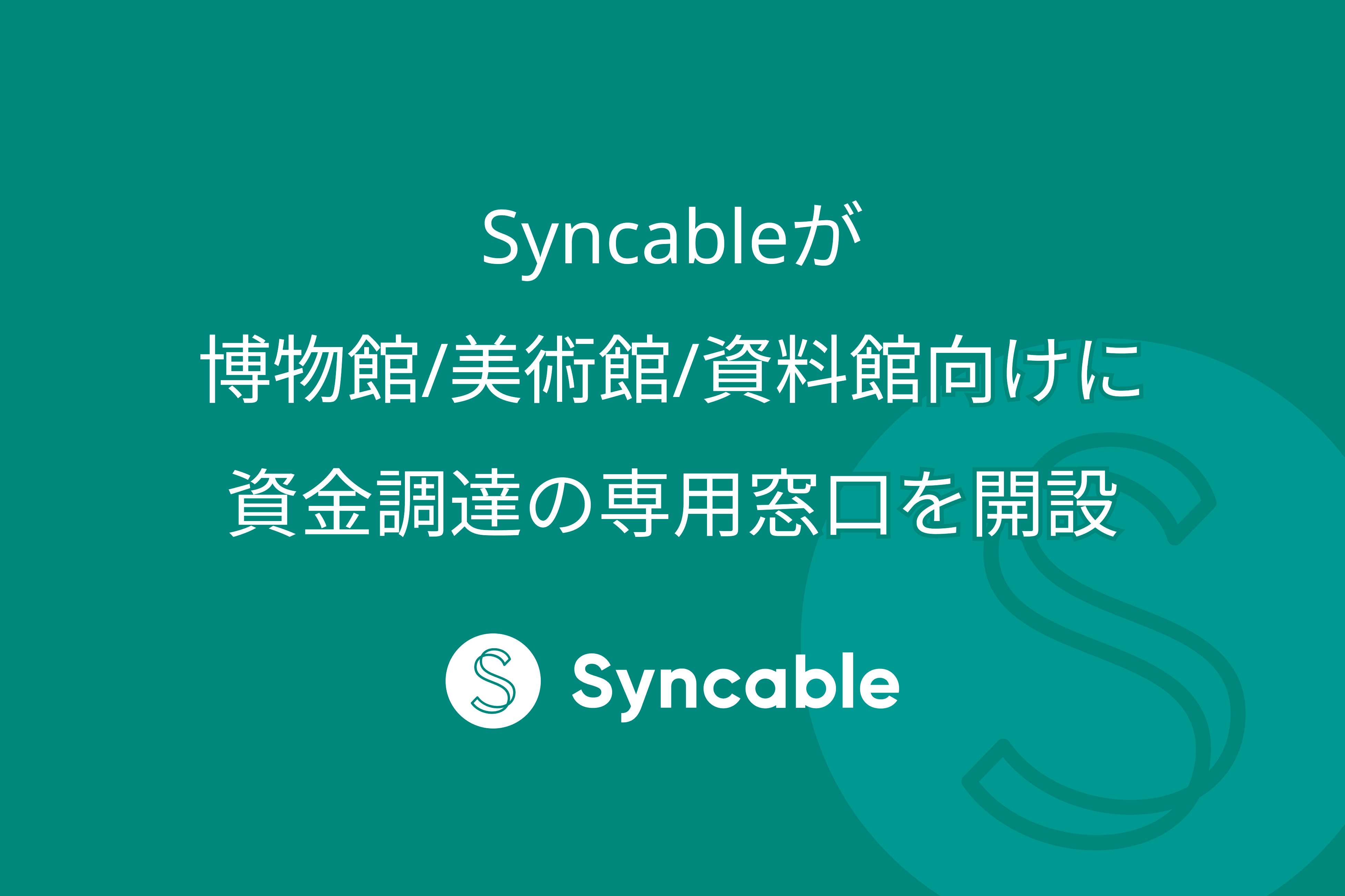 Syncableでは博物館/美術館/資料館の資金調達ニーズの高まりから専用の相談窓口を設置いたしました。