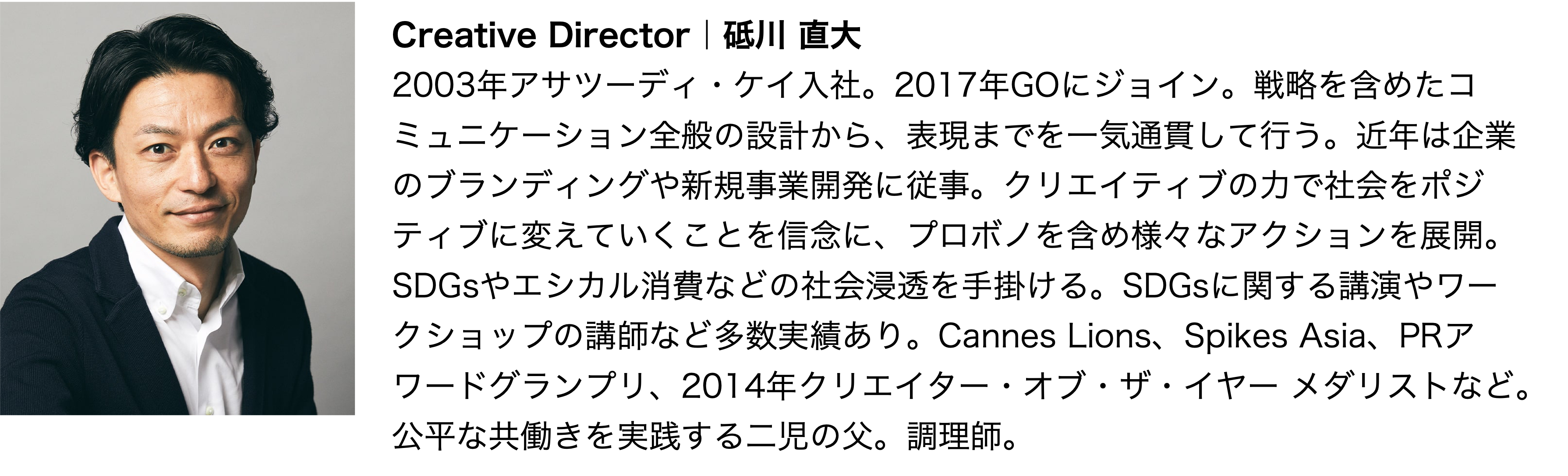 社会貢献意欲やパーパス思考はあるものの、それらをビジネスとどう両立させていくかは多くの企業が抱える課題です。SDGsやサステナビリティ経営に精通したクリエイティブディレクターの砥川を中心に、SDGsを取り入れたビジネス開発など、アイデアや前提となる考え方を提供します。