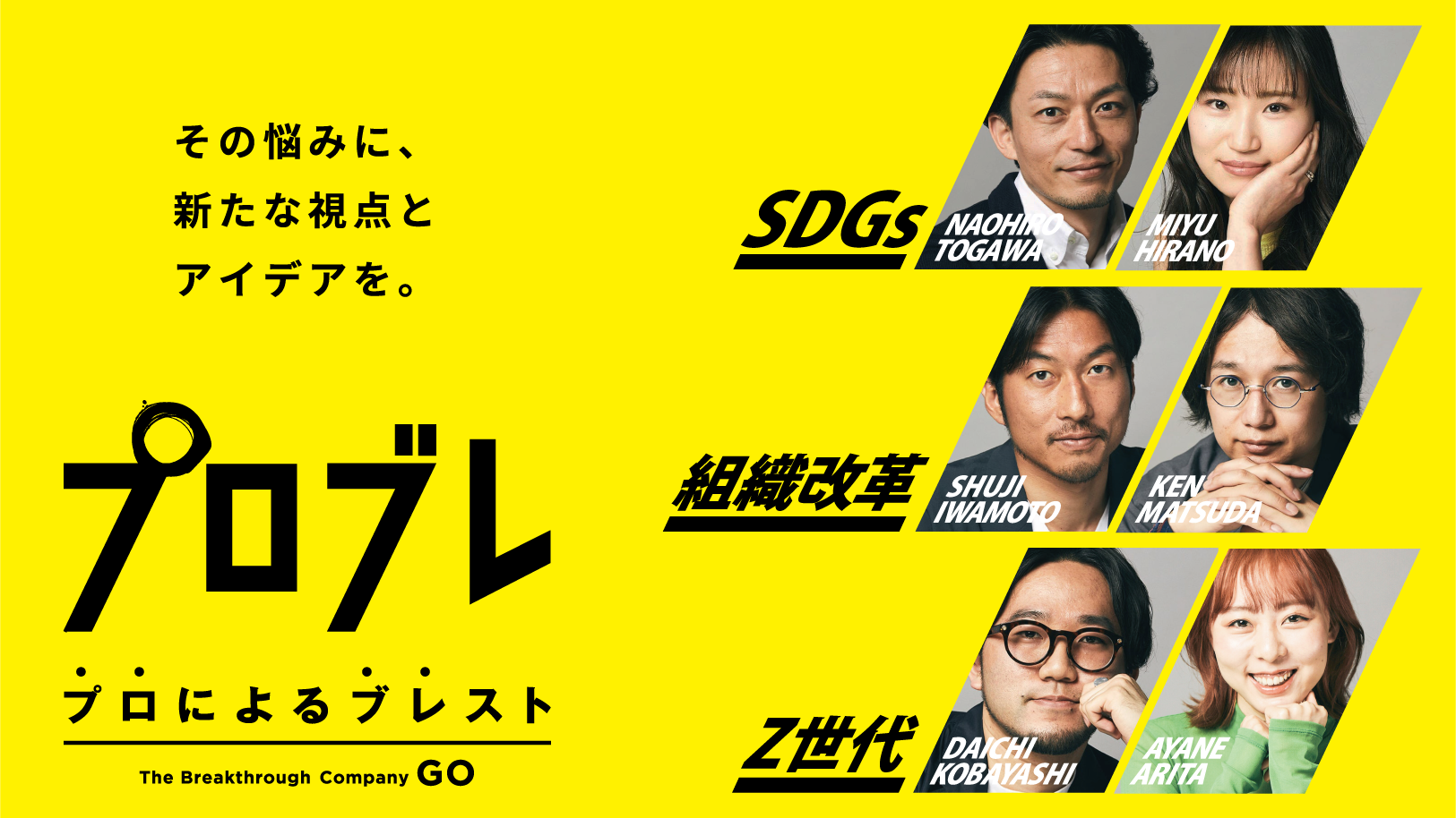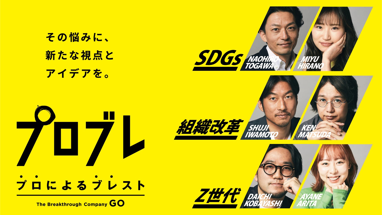 そこでGOは、多くの企業が課題意識を持つ「SDGs」「組織改革」「Z世代」の3つをテーマに設け、変化と挑戦を模索する企業に、ブレストを通じてアイデアを無償提供する「プロブレ」(プロのブレスト)の第4弾を開始することとしました。