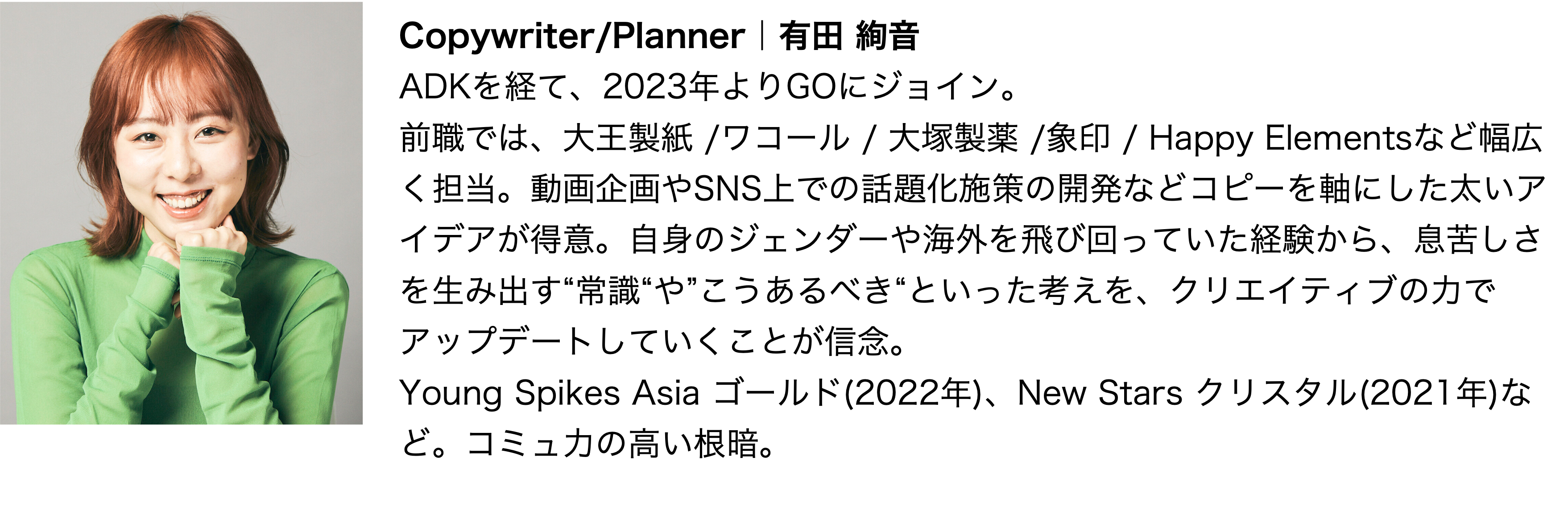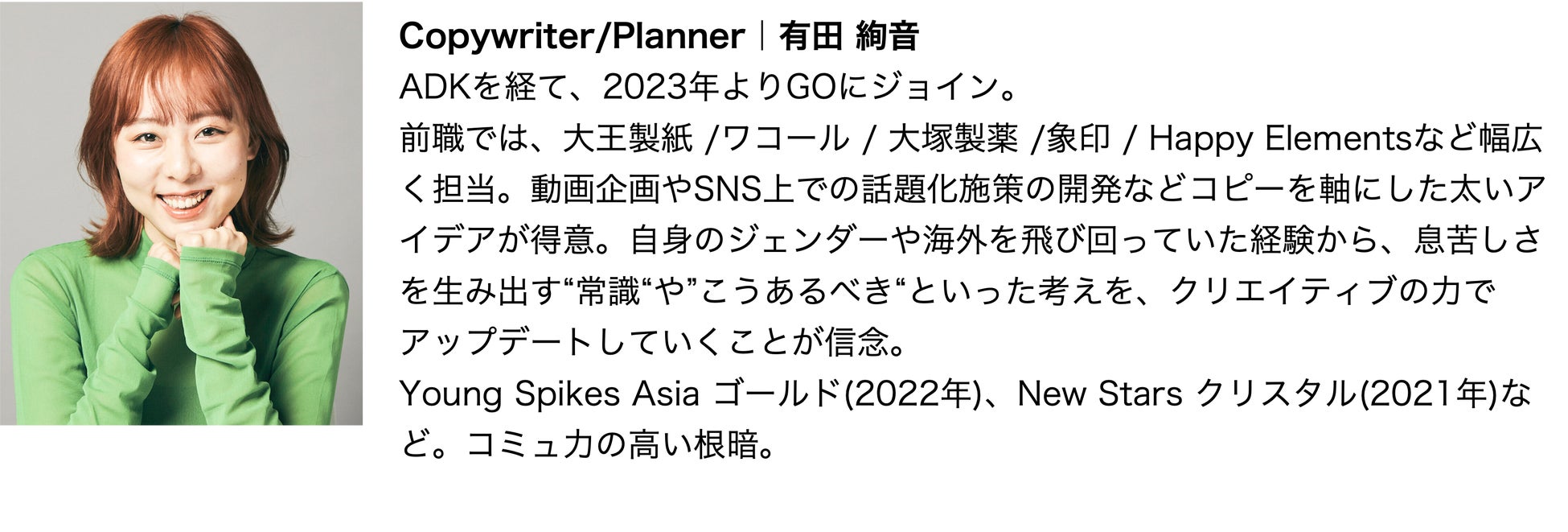 GOの若手メンバーを中心に、若年層ならではの発想や、情報社会を生き抜く彼・彼女らだからこその視点など、新たな気づきを提供します。Z世代のマーケティングや採用活動のヒントに活用ください。