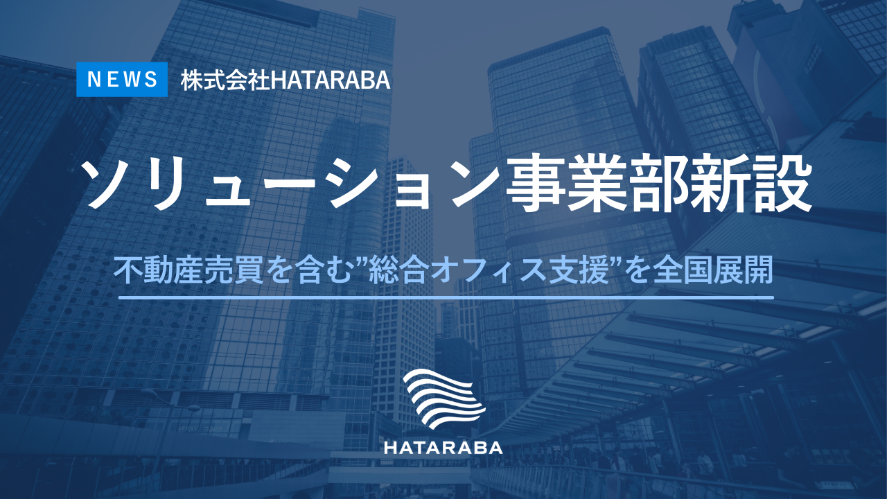 株式会社HATARABA(本社:東京都渋谷区、代表取締役:森村泰明)は、こうした全国的なニーズに応えるべく、東京・大阪を起点とした体制で不動産売買領域まで支援を拡大する「ソリューション事業部」を新設しました。