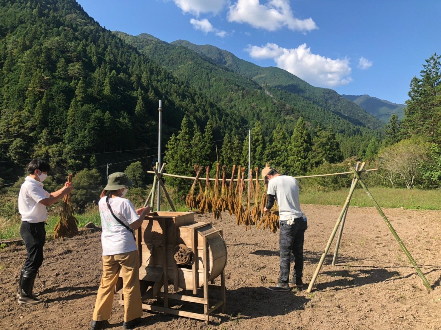 プロジェクトがスタートして今年で9年目。毎年アワの種まきから収穫までを、春華堂メンバーも実際に水窪へ足を運び活動を続けています。収穫したアワは自分たちの手で脱穀し、和菓子職人が一から手作りする和菓子へと仕上げて販売しています。