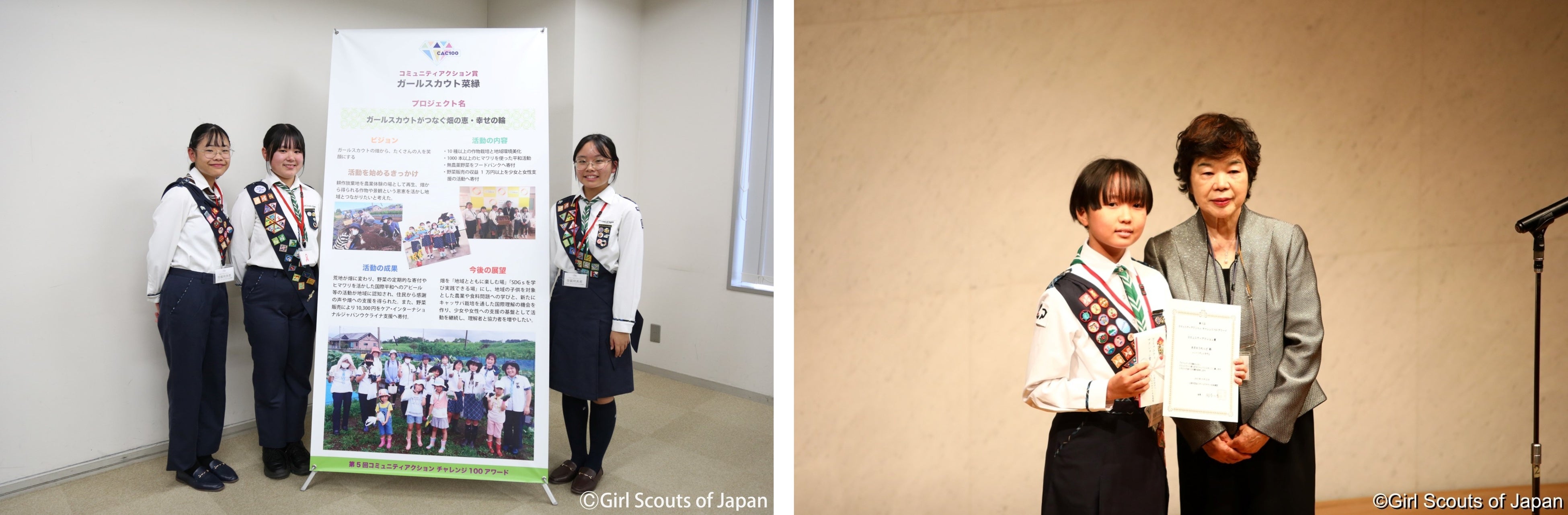 ガールスカウト日本連盟では、「少女と女性が自分らしく生きられる社会」の実現を目指してアクションし、コミュニティに変化をもたらしたプロジェクトを称え、表彰しています。