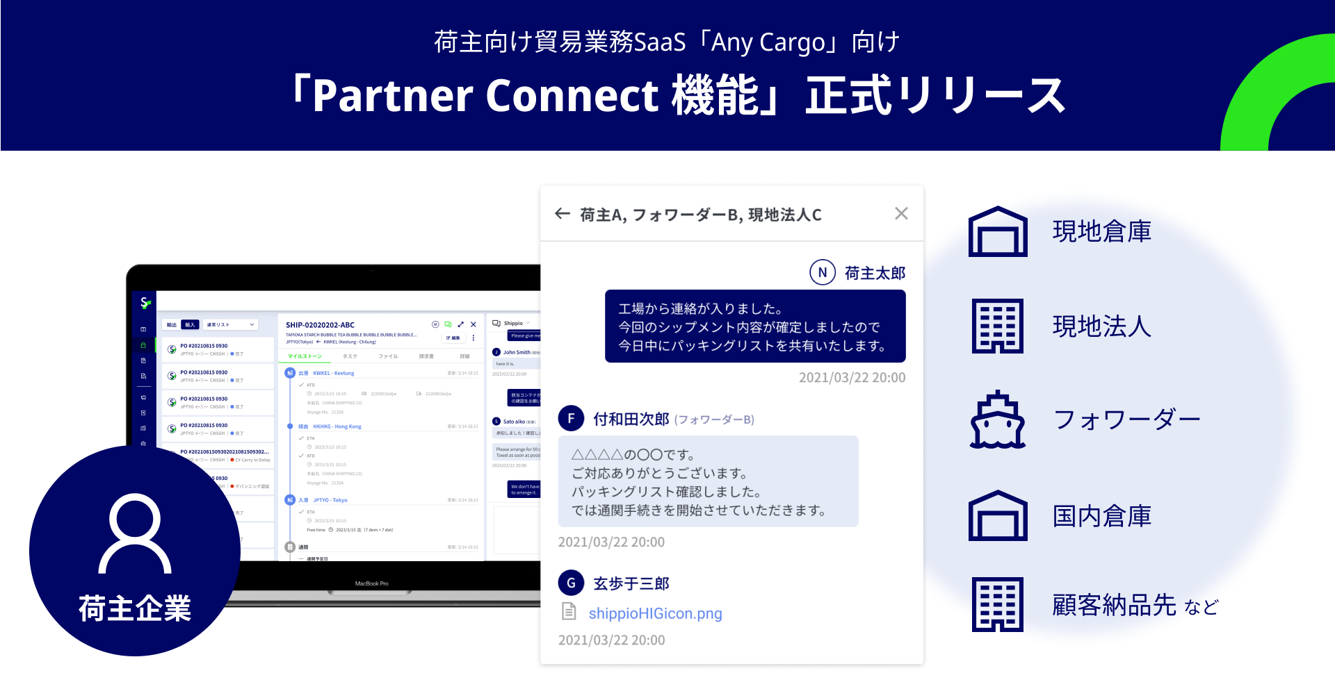 Shippio、荷主向け貿易業務SaaSである「Any Cargo」において荷主企業と物流事業者のデジタル・コラボレーション機能「Partner Connect」を正式リリース
