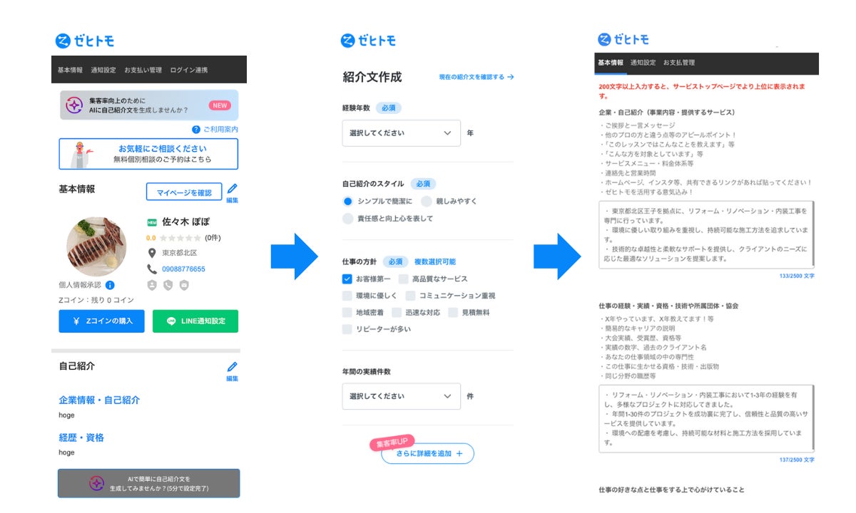 【ゼヒトモ】「AI 自動プロフィール生成機能」を全事業者向けに拡張リリース