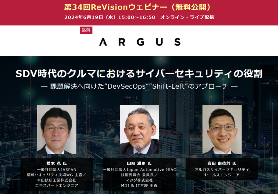 【無料WEBセミナー】 JASPAR・ホンダ、J-Auto ISAC・マツダ、Argusから講師を迎え、「SDV時代のクルマにおけるサイバーセキュリティの役割」を無料ライブ配信 ― 6月19日(水)