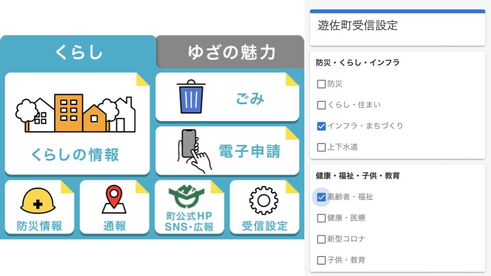 遊佐町ではメニューに「受信設定」の項目を設置。