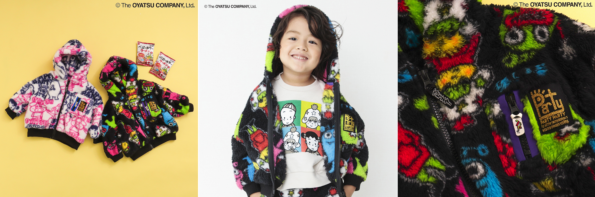 PARTY PARTYで不動の人気を誇ったフリースパーカーが、おやつカンパニーのキャラクター達とともに復活。