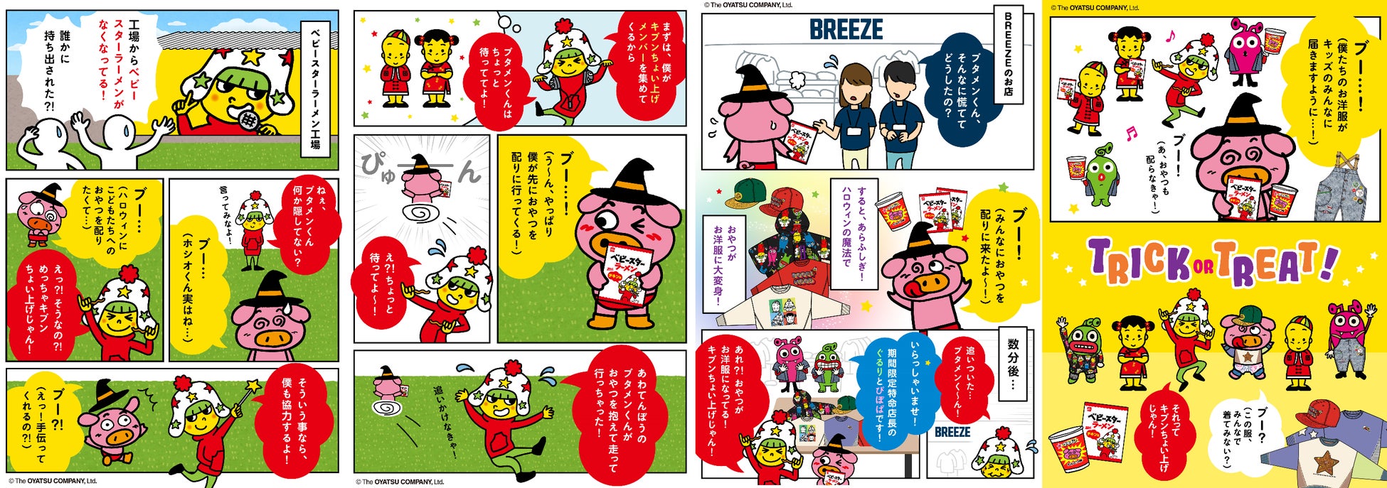 【おやつカンパニー×BREEZE】ベビースターラーメンでお馴染みの【おやつカンパニー】と、子ども服ブランド【BREEZE】のコラボアイテムが販売!