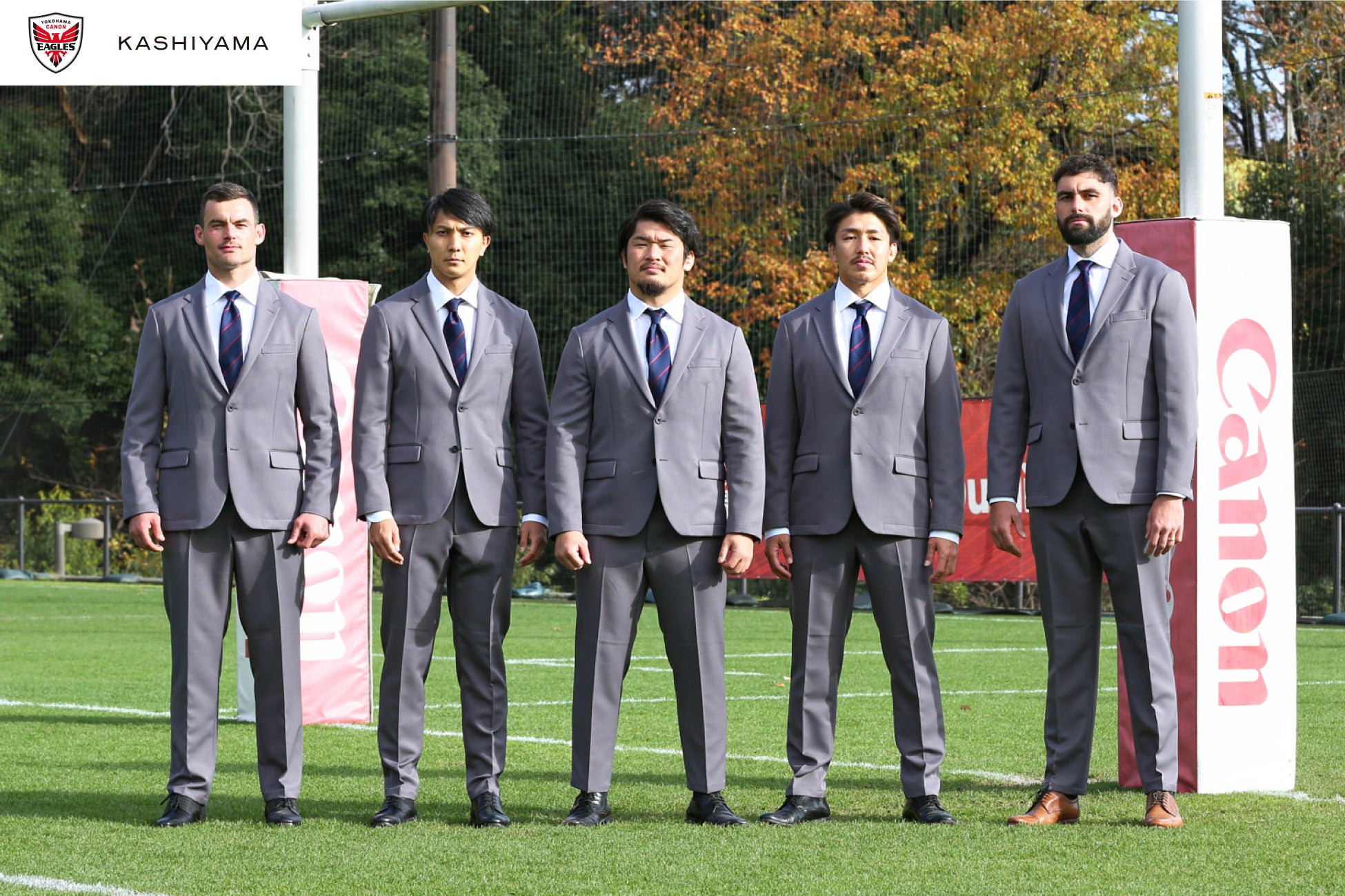 『KASHIYAMA』は、2022~2023年シーズンにおいて、「横浜キヤノンイーグルス」とオフィシャルパートナー契約を締結しています。選手および監督・コーチ、チーム関係者が試合移動時や公式行事の際に着用するオフィシャルセットアップスーツならびにシャツ・ネクタイを提供し、“Exciting & Quality Rugby”を掲げて、勝利のために闘い続けるチームの活躍をサポートしています。