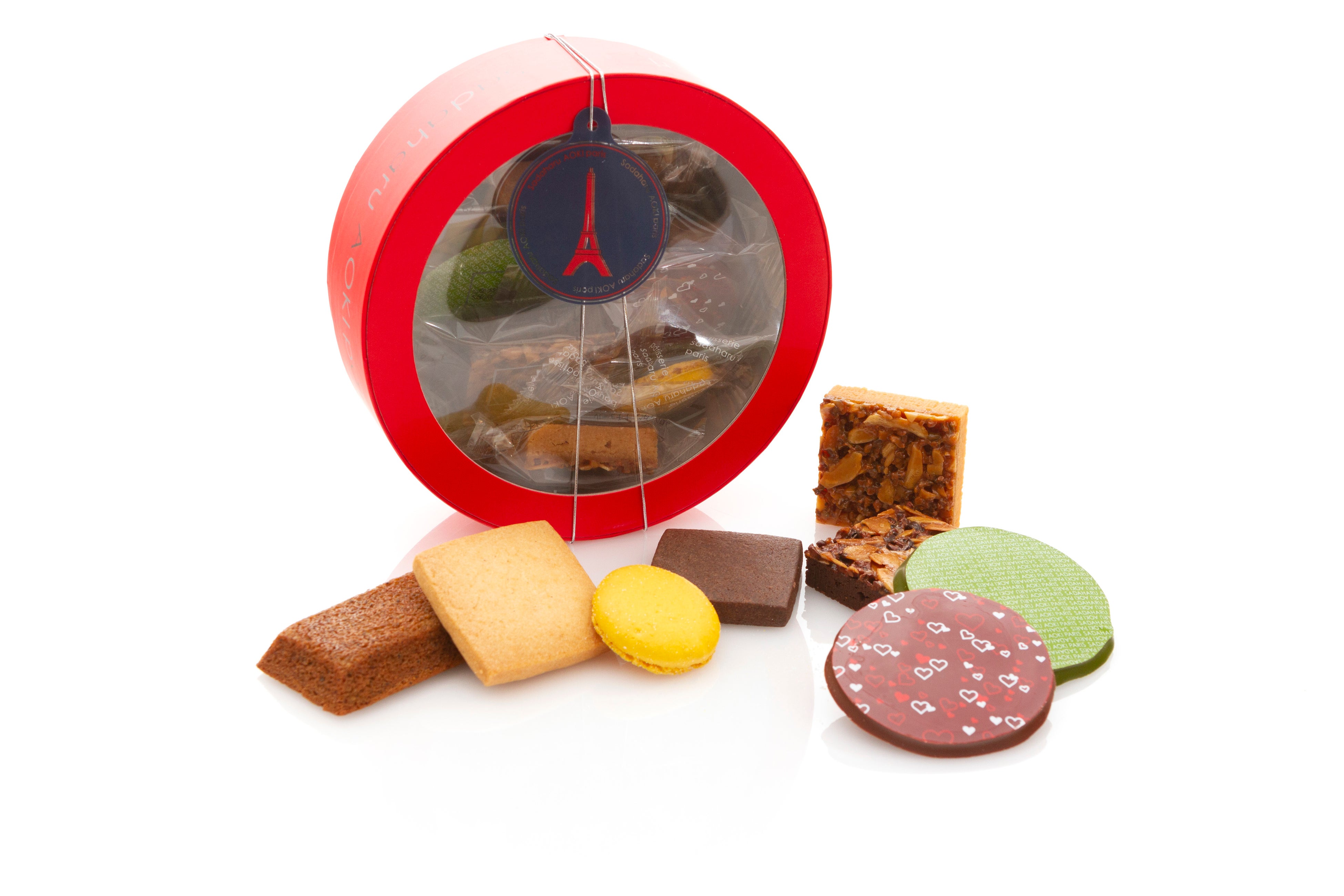 スペイン産アーモンドを使用しサクッと軽やかな食感に焼き上げたマカロン生地に、素材の風味を活かしたなめらかなクリームをサンドしたアオキのスペシャリテ。ホワイトデー限定のキュートな箱に詰め合わせました。