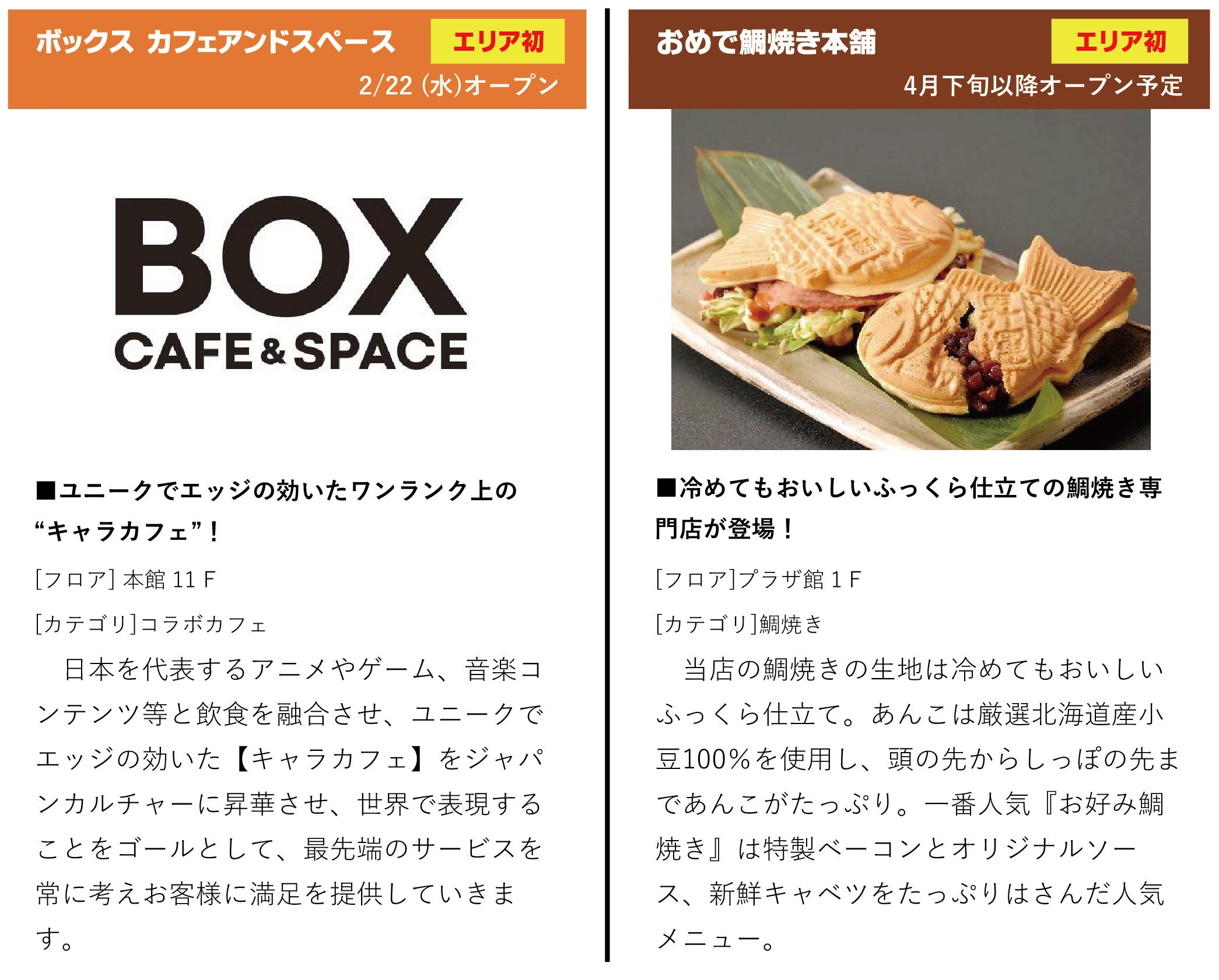 なお、関西初お目見えとなる人気キャラクターショップ等、今般発表できない一部のショップにつきましては2月以降の追加リリースにて改めてお伝えします。