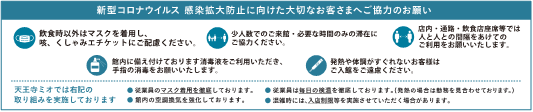 ★天王寺ミオでは、お客様及び従業員の安全と健康を最優先し、業種別に定められている「新型コロナウイルス感染症対策ガイドライン」等を踏まえた感染防止対策を各ショップと連携し実施しております。