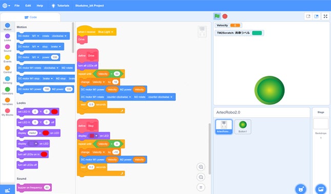 『アーテックロボ2.0』は、基板上に5×5フルカラーLEDマトリクスや、光センサーや温度センサー、加速度センサーなど各種センサーを配置。MITメディアラボが開発した『Scratch』(スクラッチ)の最新バージョン『Scratch 3.0』をベースとしたビジュアルプログラミングソフトによるプログラミングの他、Instagram、YouTubeなどの開発に使用されているプログラミング言語Python(パイソン)言語に変換可能で、プログラミングの発展学習にも活用できます。